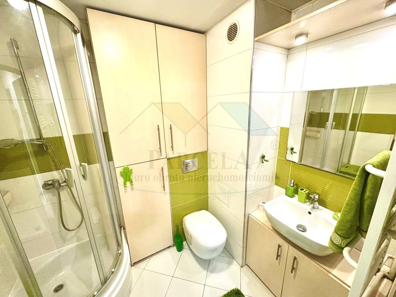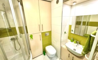- łazienka z estetyczną zabudową